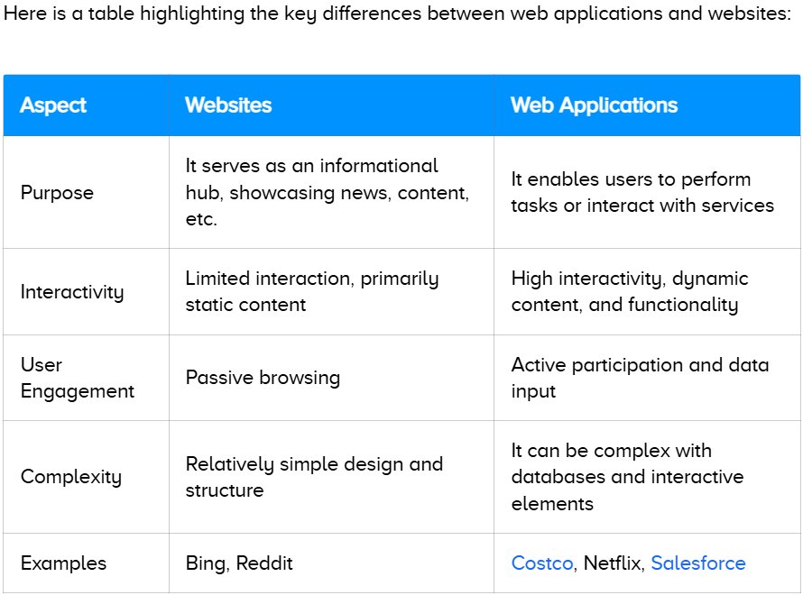 In contrast, web applications offer interactive functionality, allowing users to complete tasks, conduct transactions, or utilize services directly within the browser. Unlike traditional websites, web apps enable users not only to access content but also to manipulate and modify data.